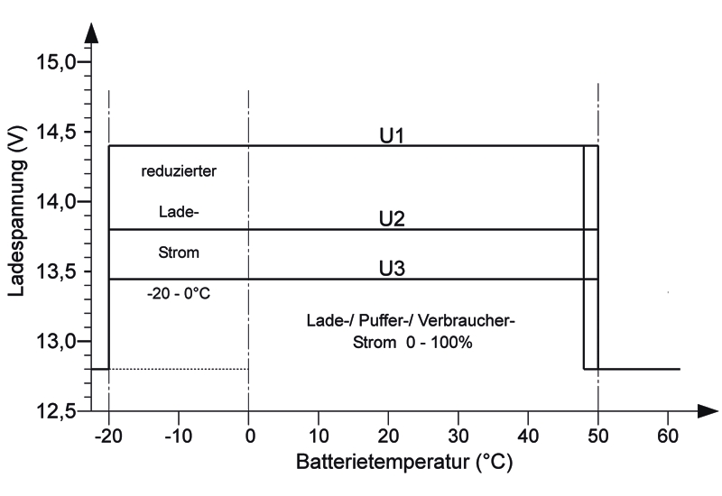 Ladeprogramm für Gel-Batterien, Kennlinie IU1oU2oU3
